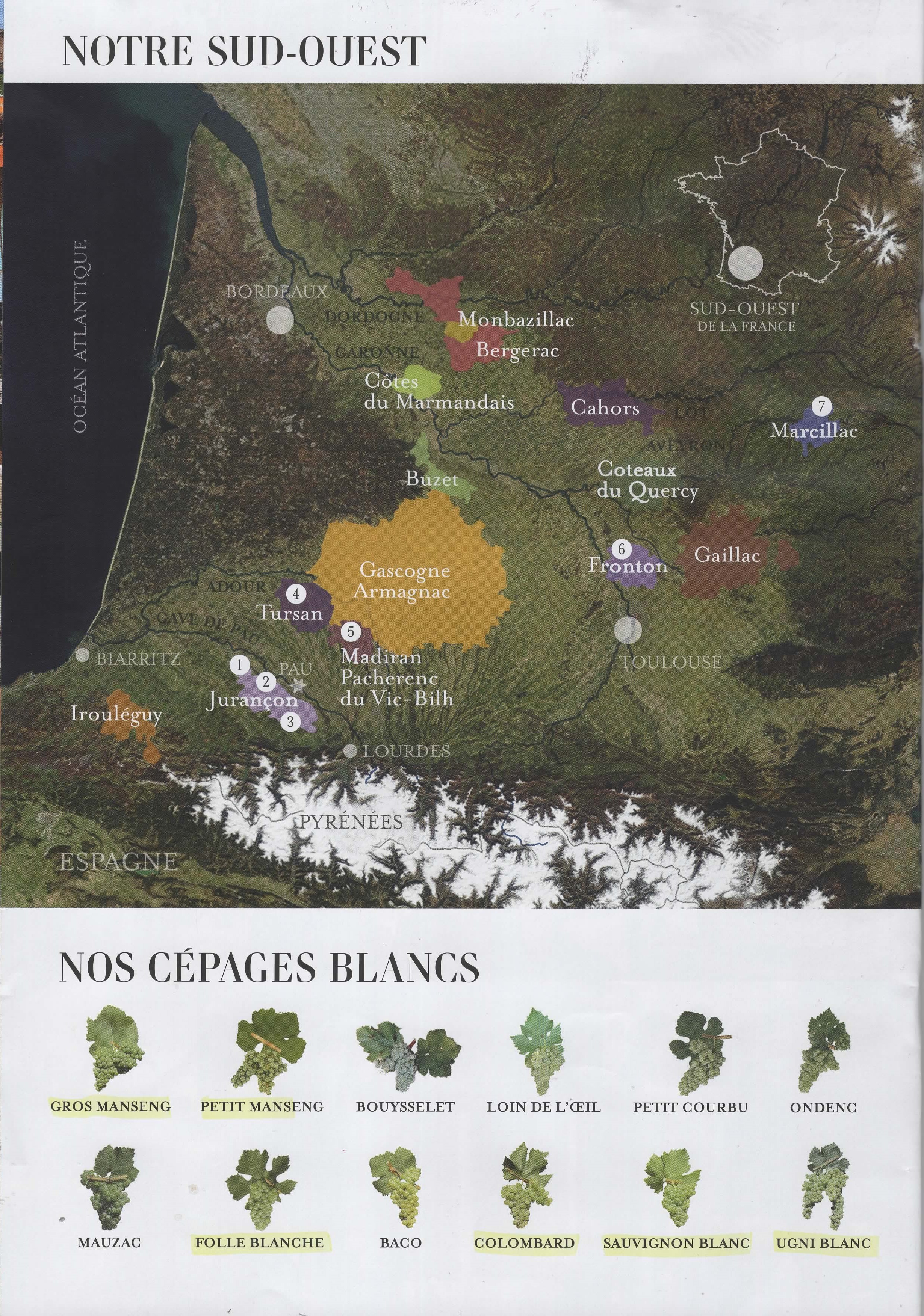 Voici les cépages de notre belle région du sud-ouest.